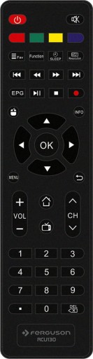 Ferguson Ariva ATV TT posiada w zestawie pilot RCU130. Wygodny rozkład klawiszy gwarantuje bezproblemową i intuicyjną obsługę. Pilot wygląda tak jak na poniższym zdjęciu po lewej stronie.