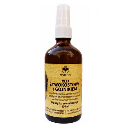 Olej żywokostowy ma zastosowanie zewnętrzne. Jego konsystencja powoduje, że szybko się wchłania, nie pozostawia uczucia śliskiej i nieprzyjemnej skóry. Wpływa to na jakość i trwałość stosowania i powoduje, że można ten produkt stosować na co dzień, w różnych sytuacjach. Zazwyczaj trudno wchłaniające się preparaty wymagają długiego okresu aplikacji, co stanowi utrudnienie w wykonywaniu codziennych czynności. Stąd zaleta produktów, które szybko wchłaniają się i nie powodują tego dyskomfortu.
