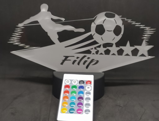 Lampka Nocna 3D LED z pilotem w postaci Piłkarza i Piłki z imieniem dziecka sprawdzi się idealnie jako prezent
