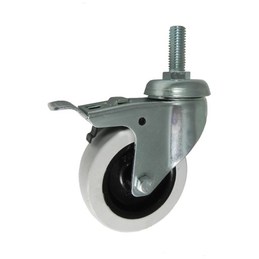 Koło tworzywowe fi 75mm meblowe - skrętne z hamulcem i gwintem M10.