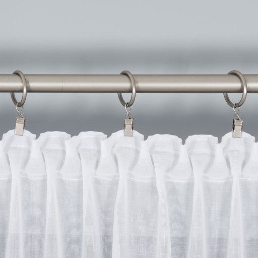 Posiada doszytą 5cm taśmę marszczącą nadającą się do wieszania na żabki lub agrafki i ma obszyte boki.
