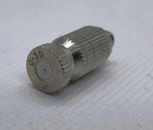 Dysza zamgławiająca 0,4 mm wykonana z niklowanego mosiądzu, wylot ze stali nierdzewnej SS304, z gwintem przyłączeniowym UNC 10/24 cala. Do systemów zamgławiających nisko i średniociśnieniowych , do dezynfekcji, fumigacji.