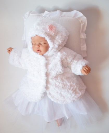 PIĘKNY CIEPŁY ZIMOWY ELEGANCKI KOMPLET DO CHRZTU