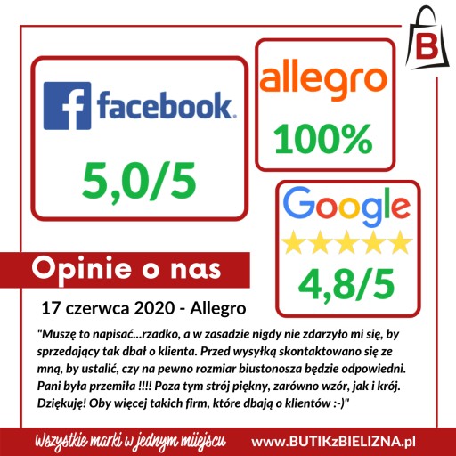 W BUTIKzBIELIZNA masz pewność, że kupujesz u sprawdzonego sprzedawcy dla którego satysfakcja klientów jest najważniejsza - sprawdź nasze oceny.