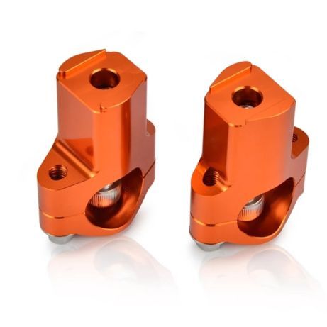 Akcesoryjne mocowanie kierownicy wykonane z aluminium 6061-T6 anodowane na kolor pomarańczowy podwyższające o 20mm w stosunku do oryginału.