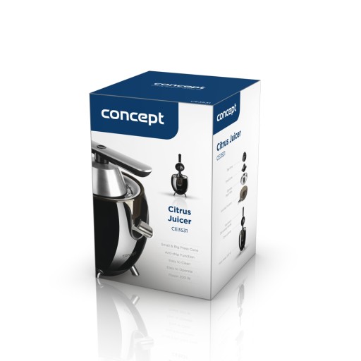Ciesz się świeżym sokiem pełnym witamin, kiedy tylko masz na to ochotę. Dzięki wyciskarce do cytrusów Concept CE3531 możesz w jednej chwili przygotować pyszny sok cytrusowy. Wyciskarka jest wyposażona w odchylane ramię zapewniające maksymalną wydajność.