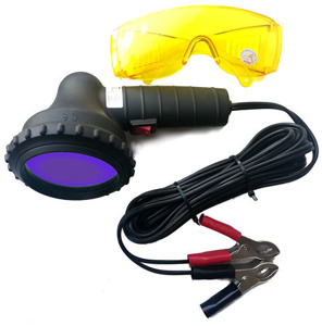Lampa UV o mocy 100W + okulary (zasilanie lampy z akumulatora w pojeździe) Latarka UV pochodzi od światowego producenta części serwisowych dla klimatyzacji samochodowej .