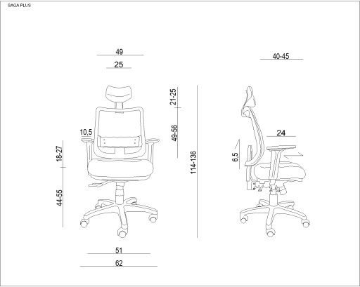 Fotel ergonomiczny Saga Plus doskonale dopasowuje się do budowy ciała korzystającej z niego osoby. Dzięki wielu regulacjom każdy punkt ciała jest doskonale podpierany przez konstrukcję fotela, a ryzyko pojawienia się bólu spowodowanego długim siedzeniem jest minimalizowane.