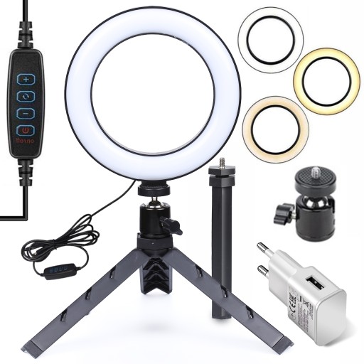 Lampa pierścieniowa LED RING 25W | modularny statyw 9 cm / 25 cm | zestaw akcesoriów