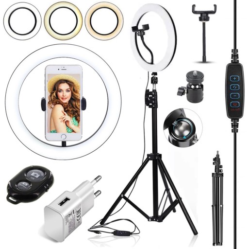 - Lampa pierścieniowa LED 20W emitująca 3 odcienie światła