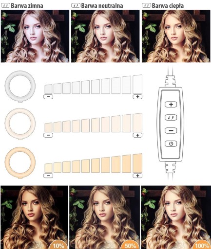 - Dostosowanie barwy i natężenia oświetlenia lampy LED RING 20W odywa się w dwóch płaszczyznach. Szczegółowy opis funkcji znajduje się w górnej części opisu przedmiotu oferty.