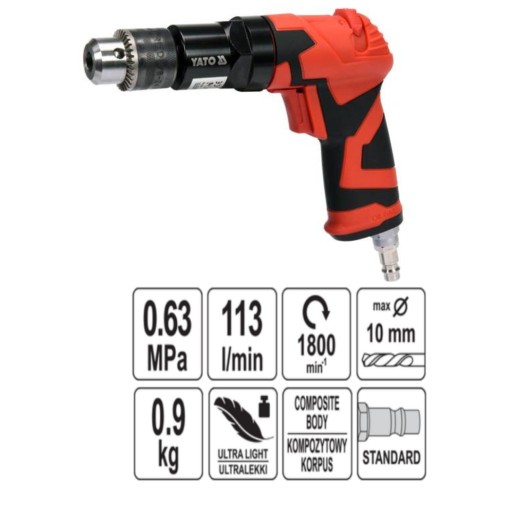 ПНЕВМАТИЧЕСКАЯ ДРЕЛЬ YATO 10 мм ЛЕГКАЯ 0,63 МПа