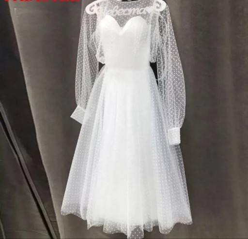 Uszyta z miękkiego tiulu w drobne, wypukłe kropeczki zachwyca prostotą i romantycznością. W stylu Audrey Hepburn.