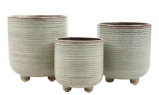 Doniczka ceramiczna na nóżkach koloru zielonego ze zdobionym rantem koloru brązowego oraz delikatnymi widocznymi wzorkami na ściankach osłonki w kolorze niebieskim. Szczególnie pięknie komponuje się z wiosennymi, zielonymi roślinami. Ta niezwykle oryginalna i elegancka donica wprowadzi wiele uroku do każdego wnętrza. Nie posiada otworu do odpływu wody.