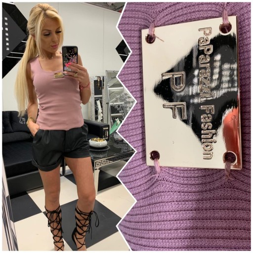 Klasyczny top na szerszych ramiączkach, wykończenie surowe, bez szwów. Prążkowany, upinający materiał, który świetnie podkreśla sylwetkę. Na biuście posiada złotą blaszkę z logo Paparazzi. Produkt polski.