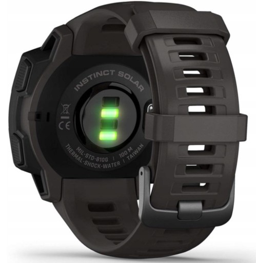 Garmin Instinct Solar to wielosportowy zegarek GPS w kolorze grafitowym, który teraz wykorzystuje energię słoneczną, aby wydłużyć czas pracy baterii. Dzięki temu możesz podróżować więcej, a ładować baterię rzadziej. W trybie zegarka to nawet 54 dni na jednym ładowaniu.