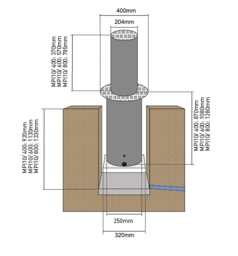■1 x słupek automatyczny o śr. 204 mm i wys. 370 mm, konstrukcja ze stali nierdzewnej