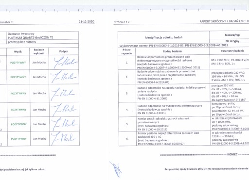 - Przebadane w INSTYTUCIE TECHNIKI i APARATURY MEDYCZNEJ " ITAM " w Zabrzu