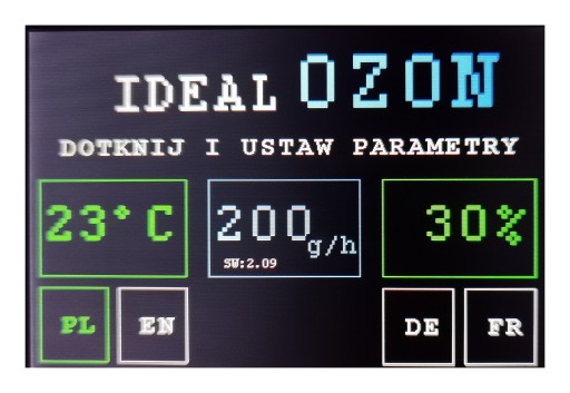 - ustawienia gramatury OZONU w zakresie 2-20g/h