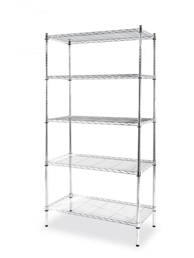 Regał magazynowy chromowany wyposażony w pięć regulowanych półek, o maksymalnym obciążeniu 80 kg. Regał dostarczamy w płaskim opakowaniu do samodzielnego montażu.