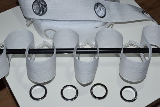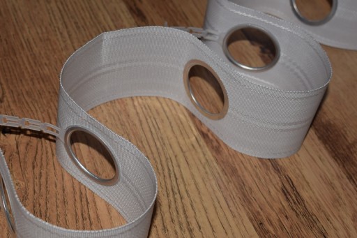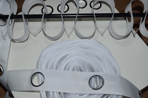 - z tyłu taśmy plastikowe zaczepy umożliwiające stabilne układanie się firany czy zasłony na karniszu.
