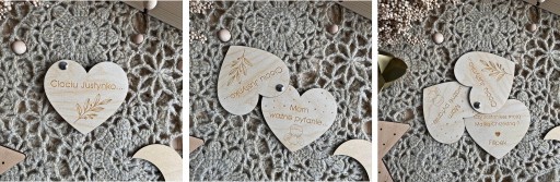 Trzyelementowe otwierane serduszko wykonane ze sklejki.