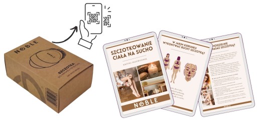 Instrukcja jak używać szczotki i masować ciało na sucho dostępna za pomocą telefonu - zeskanuj kod QR na opakowaniu szczotki.