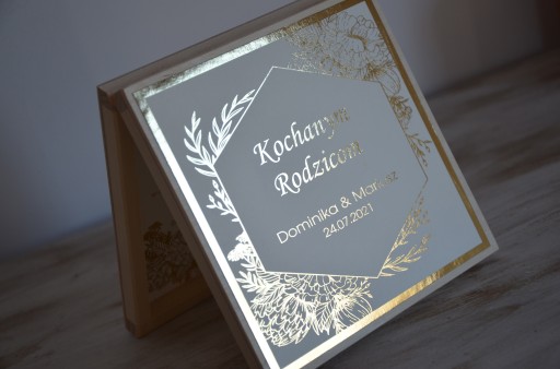 - Nadruk na górze pudełka (Kochanym Rodzicom, Kochanej Mamie, Kochanemu Tacie, Kochanej Siostrze, Kochanemu Bratu, Kochanym Dziadkom, Drogiemu Świadkowi, Drogiej Świadkowej, itd...)