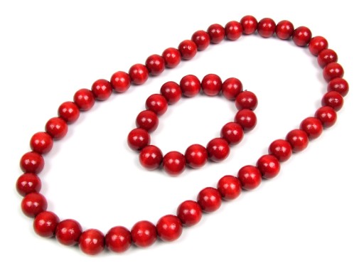 ZESTAW DREWNIANYCH KORALI: NASZYJNIK I BRANSOLETKA