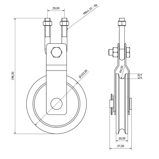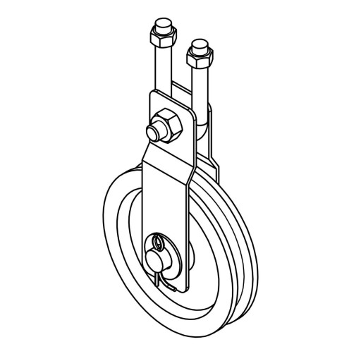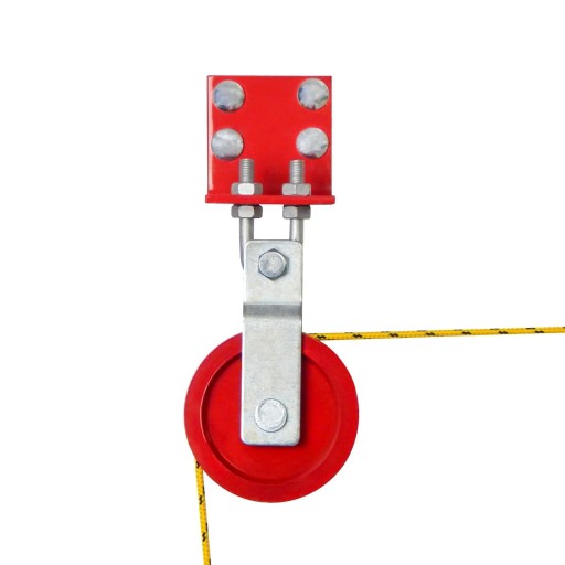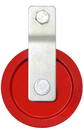 Bloczek linowy żeliwny z ramionami; Φ 105mm; malowany proszkowo; czerwony; w komplecie z M10; H76; W40; U-Bolt; śruba gwintowana w kształcie litery U z 2 nakrętkami; stalowa
