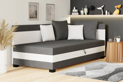 Łóżko jednoosobowe, tapczan młodzieżowy z pojemnikiem na pościel + oparcie + wezgłowie + poduszki Nela