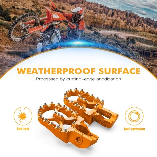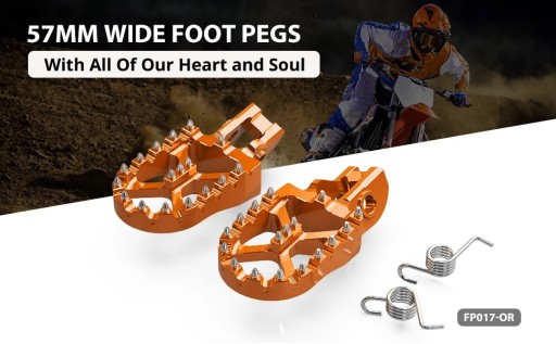 Podnóżki wykonane z aluminium 7075-T6 anodowanego na kolor pomarańczowy maja szerokość 57 mm.