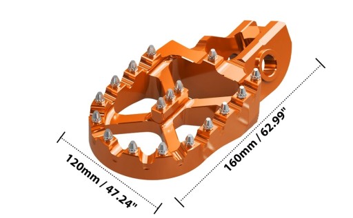 Podnóżki wykonane z aluminium 7075-T6 anodowanego na kolor pomarańczowy maja szerokość 57 mm.