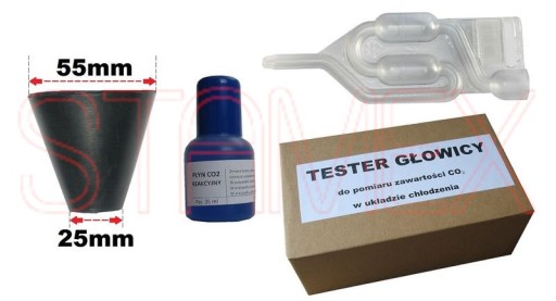 W przypadku uszkodzonej uszczelki pod głowicą lub samej głowicy część gazów spalinowych, zawierających m.in. CO2 trafia do układu chłodzenia. Zasada działania przyrządu opiera się na pomiarze stężenia CO2 - w przypadku zwiększonego stężenia płyn reakcyjny wchodzi w reakcję z CO2 i zmienia swoją barwę.