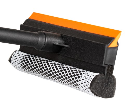 Wyposażona jest w gumową nakładkę, która zapewnia skuteczne usuwanie brudu i zanieczyszczeń z powierzchni, jednocześnie minimalizując ryzyko powstania rys na powierzchni.