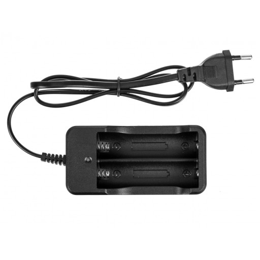 Prosta ładowarka dwukanałowa umożliwia jednoczesne ładowanie dwóch akumulatorów 18650. Ładowarka sieciowa ma automatyczną kontrolę natężenia prądu chroniącą akumulator przed przeładowaniem i zwarciem. Maksymalny prąd ładowania to 500 mA na port.