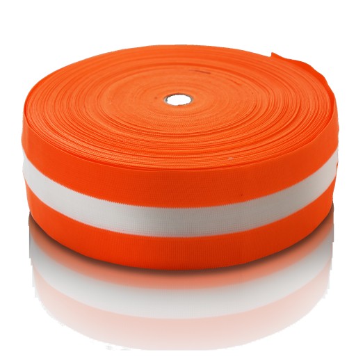 Dwustronna taśma ostrzegawcza do wielokrotnego użytku o szerokości 78 mm, zwijana na rolce po 100 metrów w wariancie kolorystycznym: pomarańczowo-białym (fluorescencyjna)