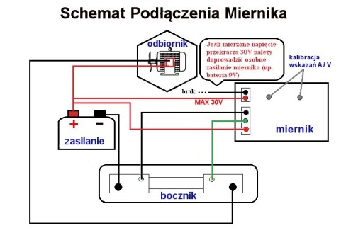 Wersja z czerwonym woltomierzem i czerwonym amperomierzem.