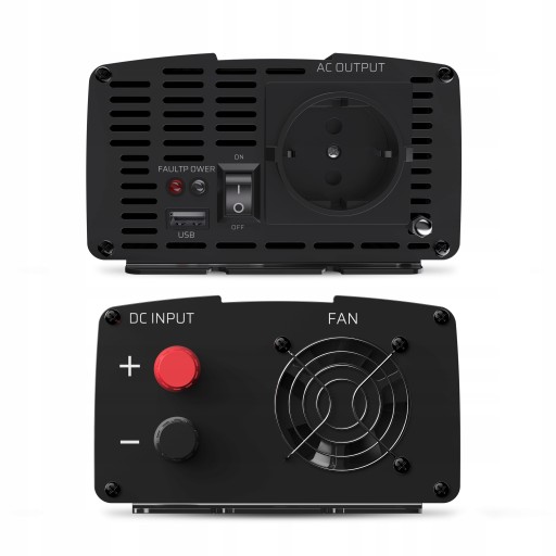 Urządzenie zostało zaprojektowane tak, aby użytkowanie było jak najbardziej komfortowe. Przód przetwornicy wyposażony jest w gniazdo sieciowe dostosowane do wtyczek stosowanych w całej Europie oraz port USB, dzięki któremu naładujemy nasz smartfon, czytnik ebooków oraz każde inne urządzenie posiadające możliwość połączenia przez port USB. Z tyłu inwertera umiejscowiono wentylator zapewniający odpowiednie chłodzenie urządzenia. Całość została zamknięta w niewielkiej, a zarazem bardzo wytrzymałej obudowie. Wykonana ona jest z wysokiej jakości aluminium dzięki czemu odporna jest na wszelkie mechaniczne uszkodzenia oraz wstrząsy podczas podróży. Ponadto dzięki zastosowanym materiałom, przetwornica jest bardzo lekka.