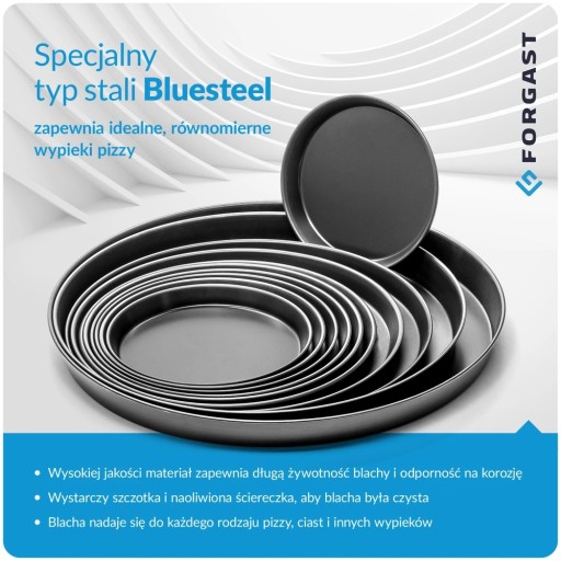 Blacha wykonana ze specjalnego typ stali Bluesteel, zapewniającej idealny efekty wypieku każdego rodzaju pizzy.