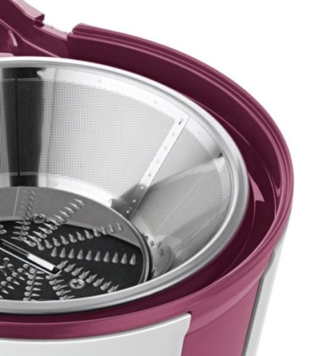 - Funkcje: Możliwość mycia elementów w zmywarce, Wyjmowany zbiornik na miąższ, Pojemnik na sok