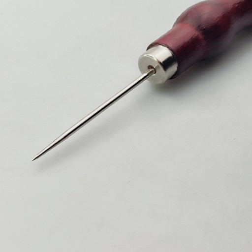 Szydło ma drewnianą rękojeść do której przymocowana jest na stałe igła.