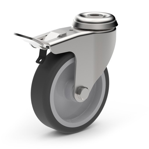 Zestaw kołowy, skrętny z hamulcem, otwór montażowy, łożysko ślizgowe, koło TPA D-100mm a-27mm
