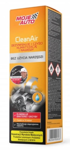 Moje Auto CleanAIr – ŚWIEŻY to skuteczny preparat odświeżający i oczyszczający nawiewy i system wentylacji w pojazdach, o świeżym zapachu, który możesz stosować bez konieczności użytku narzędzi. Preparat odświeżający i oczyszczający nawiewy i system wentylacji w pojazdach CleanAir usuwa nieprzyjemne zapachy spowodowane zaleganiem zanieczyszczeń i wilgocią zapewniając świeży zapach we wnętrzu samochodu.