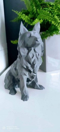 Piesek wykonany techniką Low Poly (wygląd geometryczny). Figurka stabilna i wytrzymała bo ma wypełnienie w środku. Figurka wykonana z lekkiego i ekologicznego plastiku, który zachwyca oryginalnym designem. Piękny dodatek do wystroju domu.