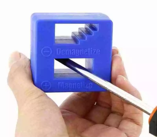 Urządzenie służące do magnesowania i rozmagnesowywania śrubek, wkrętaków, pęset i innych przedmiotów ze stopów żelaza.