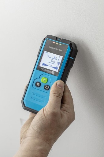 - Stosowanie wykrywacza znacznie minimalizuje ryzyko uszkodzenia instalacji elektrycznej oraz hydraulicznej umieszczonej pod tynkiem.