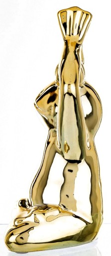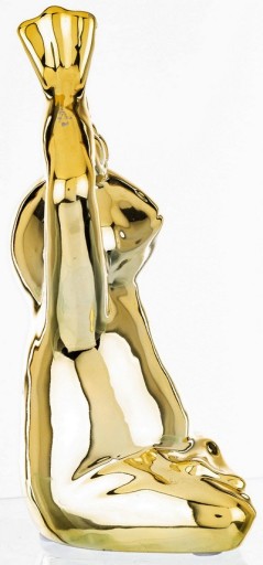 Druga figurka przedstawia żabę z przednimi łapami złożonymi nad głową. Ta pozycja otwiera klatkę piersiową i pomaga w rozciąganiu mięśni.