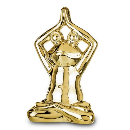 Figurki 3 żabek w pozycjach jogi, wykonane z ceramiki w kolorze lustrzanego złota, Stanowią one dekoracyjne przedmioty, które symbolizują spokój, równowagę i harmonię - kluczowe elementy praktyki jogi.