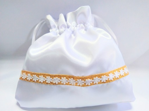 Przedmiotem sprzedaży jest torebka komunijna (woreczek) wykonana z białej satyny . Wzór taki jak na zdjęciu.